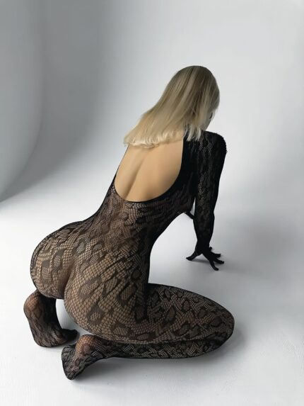 Arias Closet Özel Tasarım Siyah Sırt Dekolteli Fantezi Body Vücut Çorabı