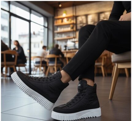 BA0801 BOA Yüksek Taban Siyah Paraşüt Kumaş Beyaz Cilt Detaylı Erkek Ayakkabı