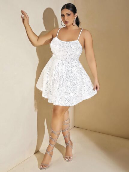 Arias Closet Özel Tasarım Büyük Beden Siyah Payetli Parlak Işıltılı Zincir Sırt Dekolteli Mini Club Elbisesi