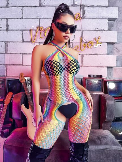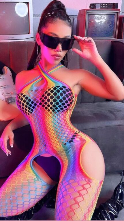 Arias Closet Gökkuşağı Desenli Fileli Fantezi Vücut Çorabı