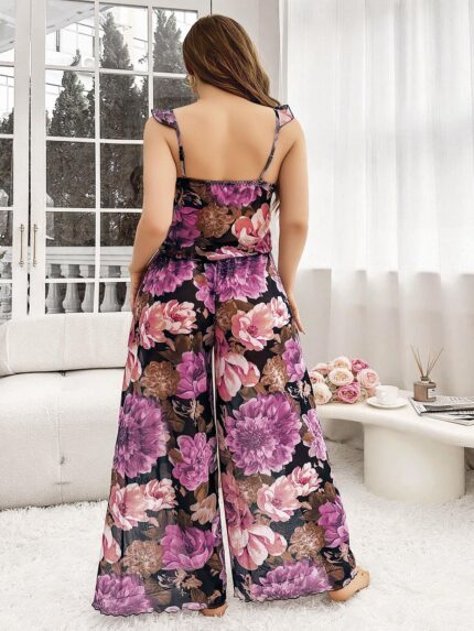Arias Closet Özel Tasarım Büyük Beden Çiçek Desenli Bol Kesim 2’li Pijama Takımı