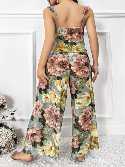Arias Closet Özel Tasarım Büyük Beden Çiçek Desenli Fırfırlı 2’li Pijama Takımı
