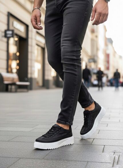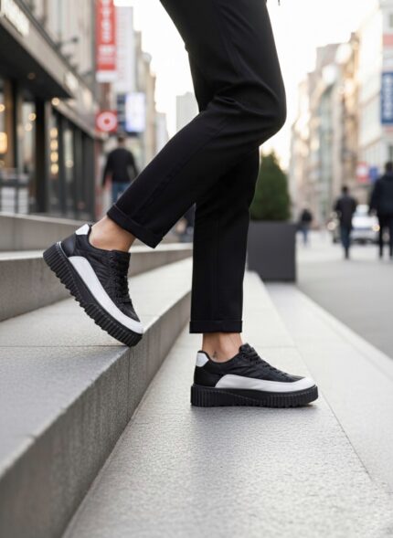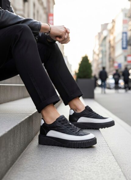BA0801 BOA Yüksek Taban Siyah Paraşüt Kumaş Beyaz Cilt Detaylı Erkek Ayakkabı