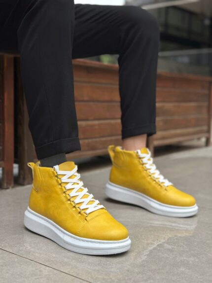 BA0713 Bağcıklı Sarı Yüksek Taban Erkek Tarz Spor Bot