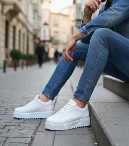 BA0802 BOA Beyaz Renk Yüksek Taban Erkek Günlük Ayakkabı