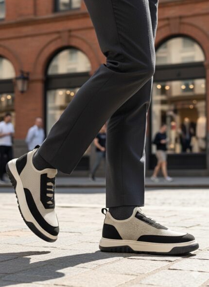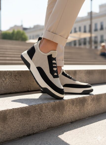 BA0911 Özel Örme Triko Deri Tozu Detaylı Bej Siyah Günlük Spor Ayakkabı