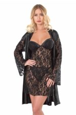 Ahu Siyah Kısa İkili Saten Sabahlık Gecelik Takımı 7680