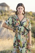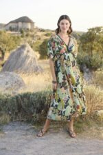 Arias Closet Çiçek ve Yaprak Desenli Truvakar Kollu Elbise
