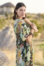 Arias Closet %100 Viskon Çiçek ve Yaprak Desenli Önü Düğmeli Elbise