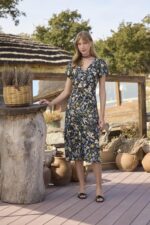 Arias Closet %100 Viskon Çiçek ve Yaprak Desenli Önü Düğmeli Elbise