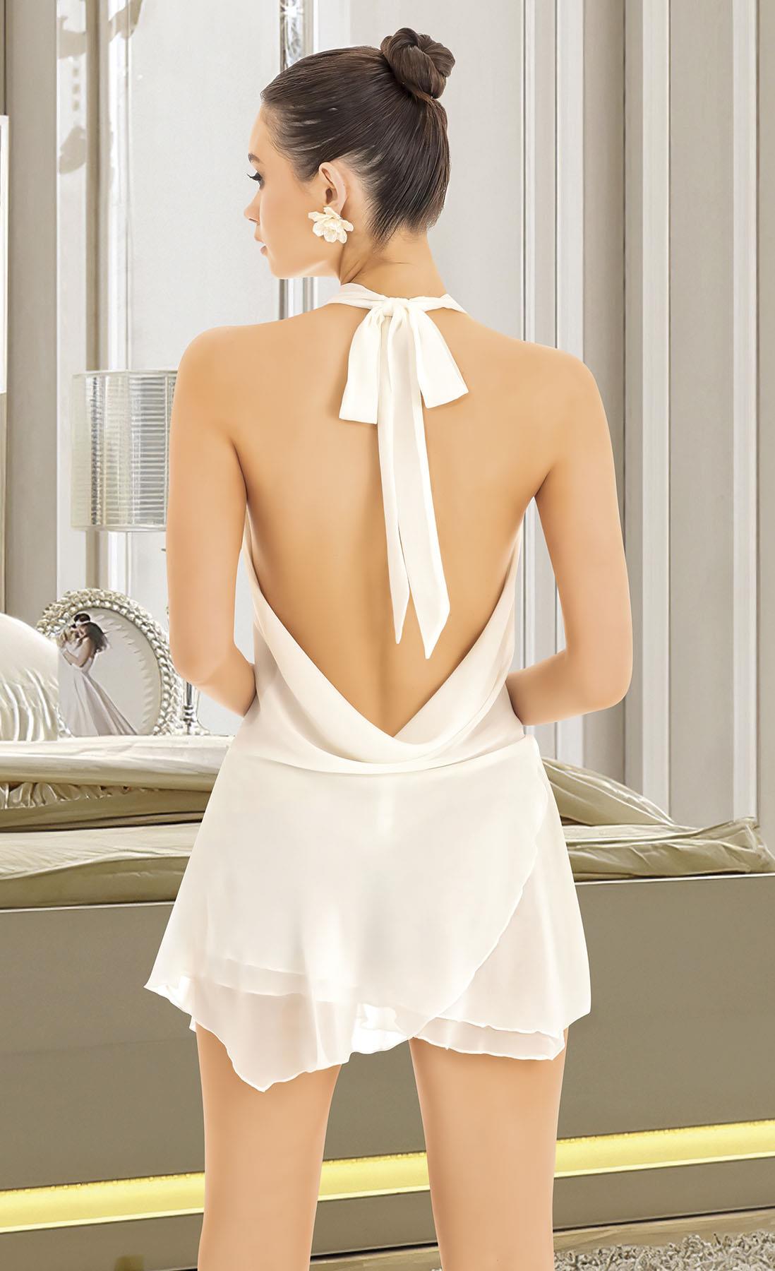 Arias Closet Beyaz Sırt ve Göğüs Dekolteli Fantezi Mini Elbise