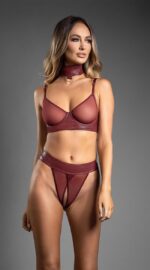 Bordo Tül Büstiyerli Özel Bölgesi Açık Kelepçeli Fantezi Deri Takım – Ürün Tanıtım Metni
