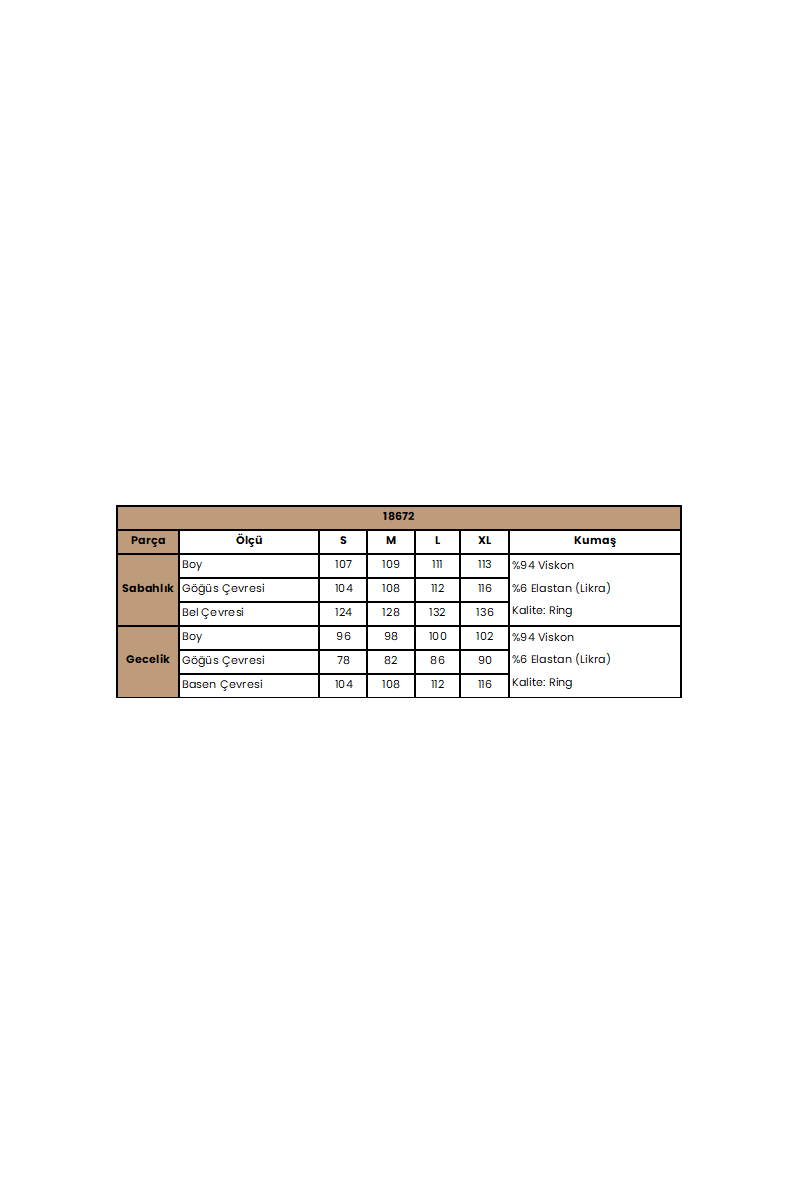 Gecelik: Gri renklidir, derin V yakalıdır, yakası, göğsü ve göğüs altı dantellidir, emzirme için askılardan açılır durumdadır, ayarlanabilir lastik askılıdır, örme kumaştır.