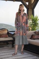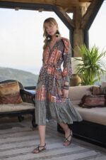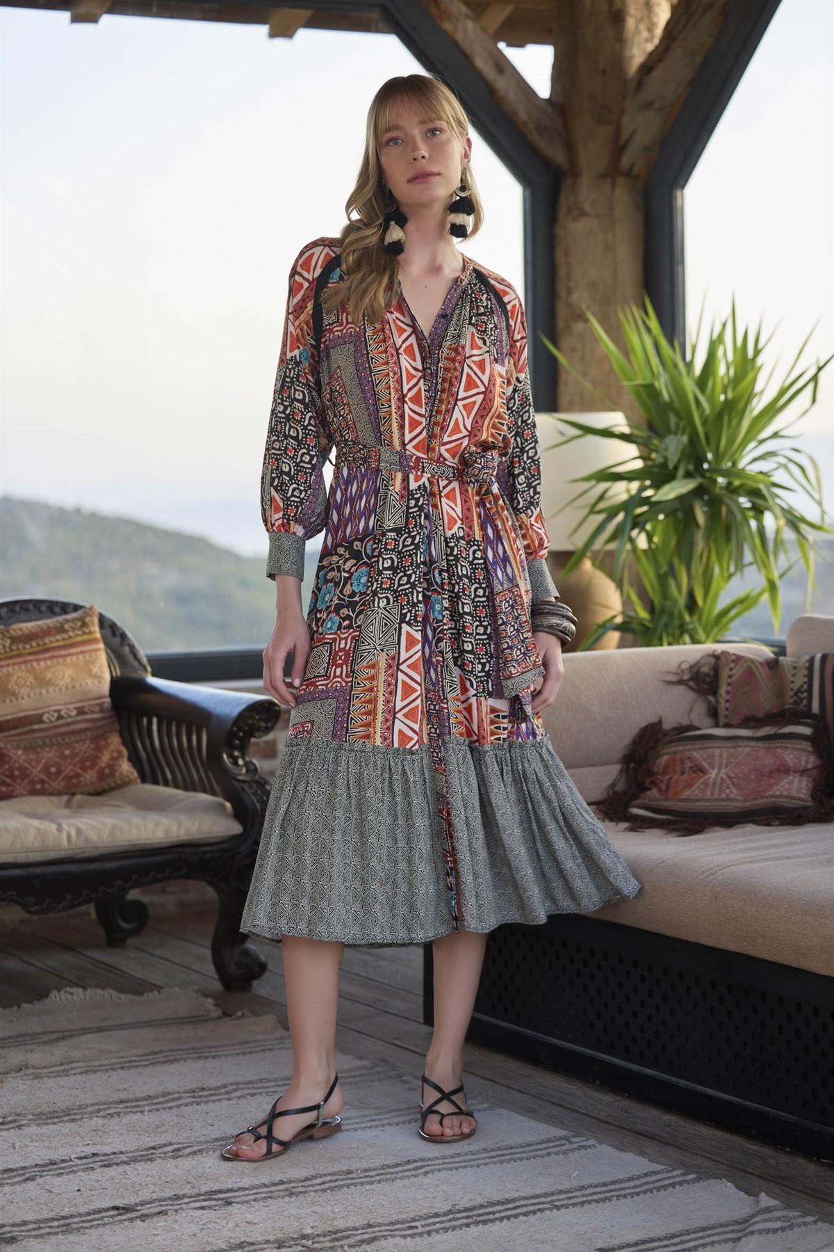 Arias Closet Etnik Desenli Kuşaklı Elbise