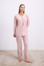 Modal Pamuklu Uzun Kollu Düğmeli 2’li Pijama Takımı