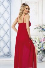 Arias Closet Kırmızı Dantel İşlemeli Yırtmaçlı Fantezi Uzun Gecelik