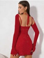 Göz alıcı kırmızı rengi ve simli kumaşıyla ışıl ışıl parlayan bu özel mini club elbisesi, cesur ve şık tarzıyla dikkatleri üzerinize çeker. Vücudu sararak kusursuz bir siluet oluşturan tasarımı, yırtmaç detayıyla feminen bir dokunuş katıyor.