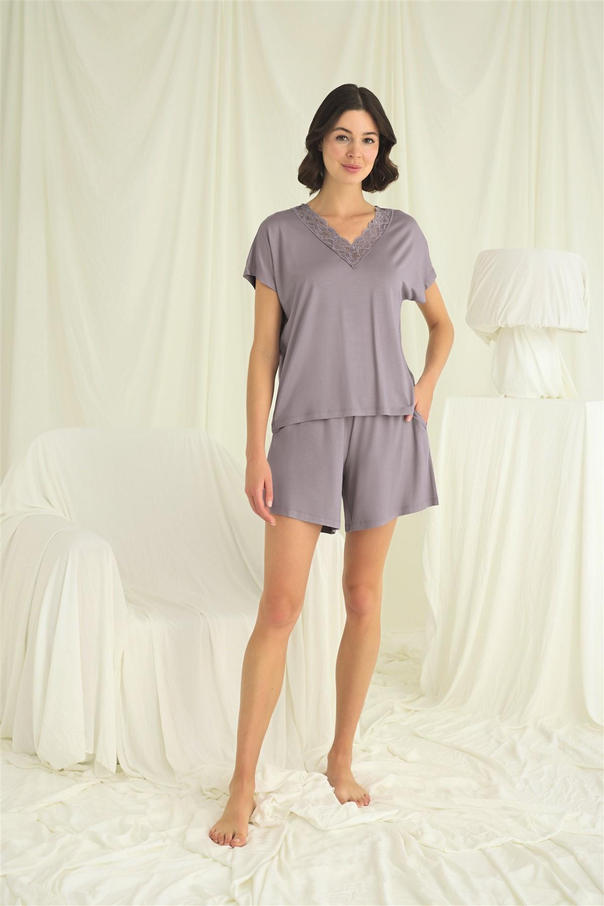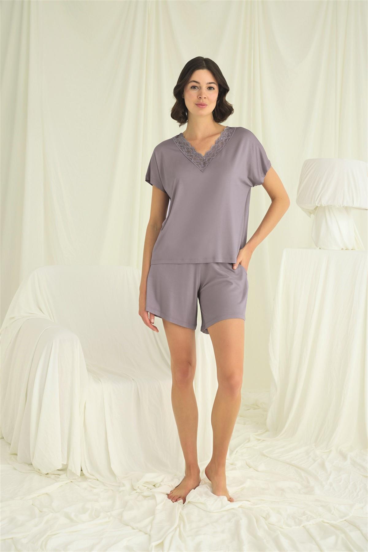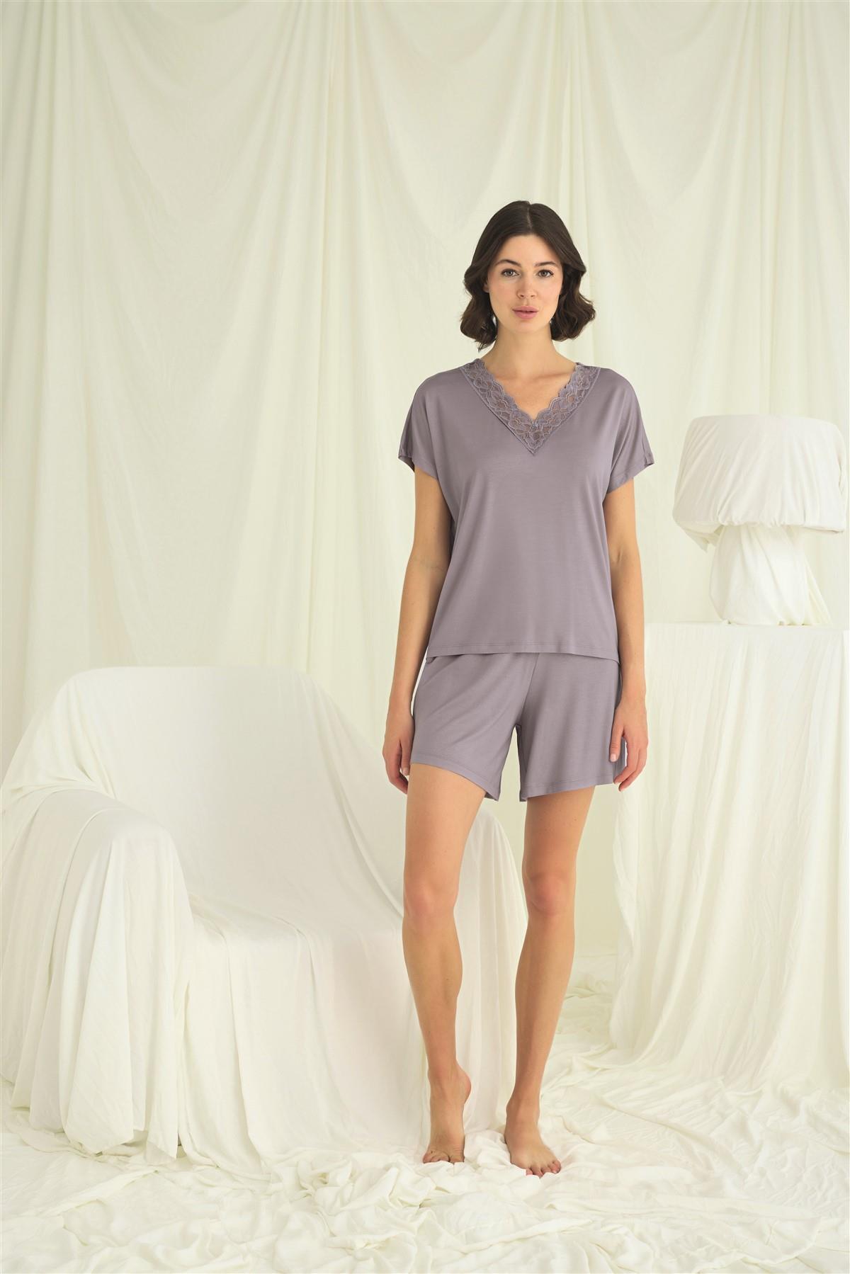 Arias Closet Kısa Kollu Dantelli V Yaka Şort Takımı