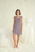 Gecelik: Gri renklidir, V yakalıdır, kolu, omzu ve yakası dantellidir, yakasının altı düğmelidir, kısa kolludur, örme kumaştır.