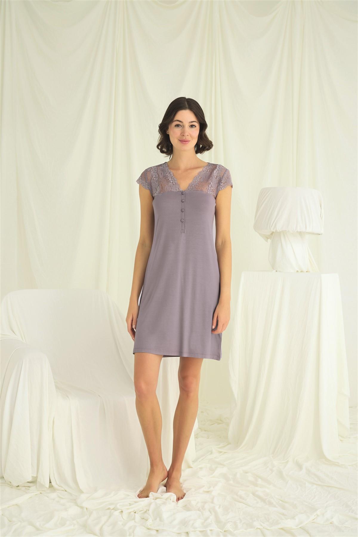 Arias Closet Yakası Dantelli Kısa Kollu Gecelik