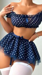 Lacivert Fırfır Etekli Puantiyeli Jartiyerli Fantezi Kostüm