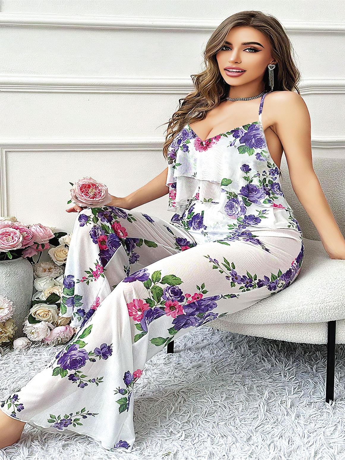 Özel Tasarım Büyük Beden Çiçek Desenli Fırfırlı 2’li Pijama Takımı, zarif çiçek desenleri ve feminen fırfır detaylarıyla ev giyimine romantik bir şıklık kazandırır. Büyük beden ölçülerine uygun rahat kalıbı sayesinde vücudu sıkmadan sarar, gün boyu ve gece boyunca konforlu bir kullanım sunar.
