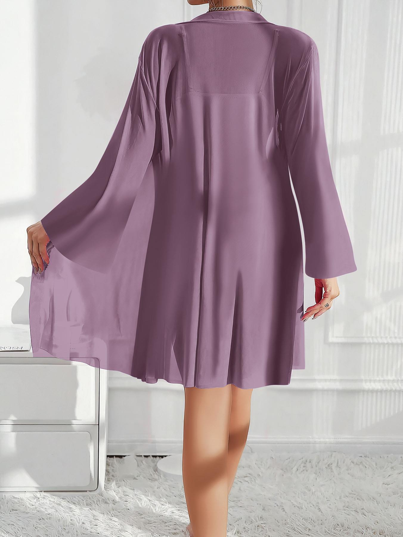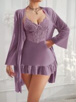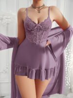 Arias Closet Özel Tasarım Dantel İşlemeli Fırfırlı Sabahlıklı 2’li Mor Gecelik Takımı