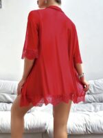 Arias Closet Özel Tasarım Dantel İşlemeli Göğüs Dekolteli Sabahlıklı Kırmızı 2’li Tül Gecelik Takımı