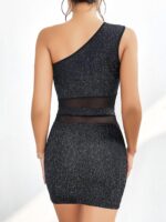 Arias Closet Özel Tasarım Siyah Tek Omuz Dekolteli Işıltılı Fantezi Mini Club Elbisesi