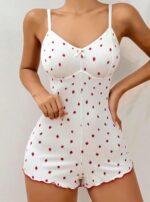 Pamuklu Beyaz Çilek Desenli Tulum Pijama