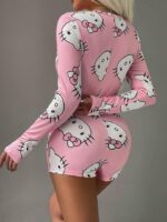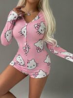 Arias Closet Pamuklu Pembe Hello Kitty Desenli Düğmeli Uzun Kol Tulum Pijama