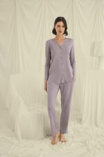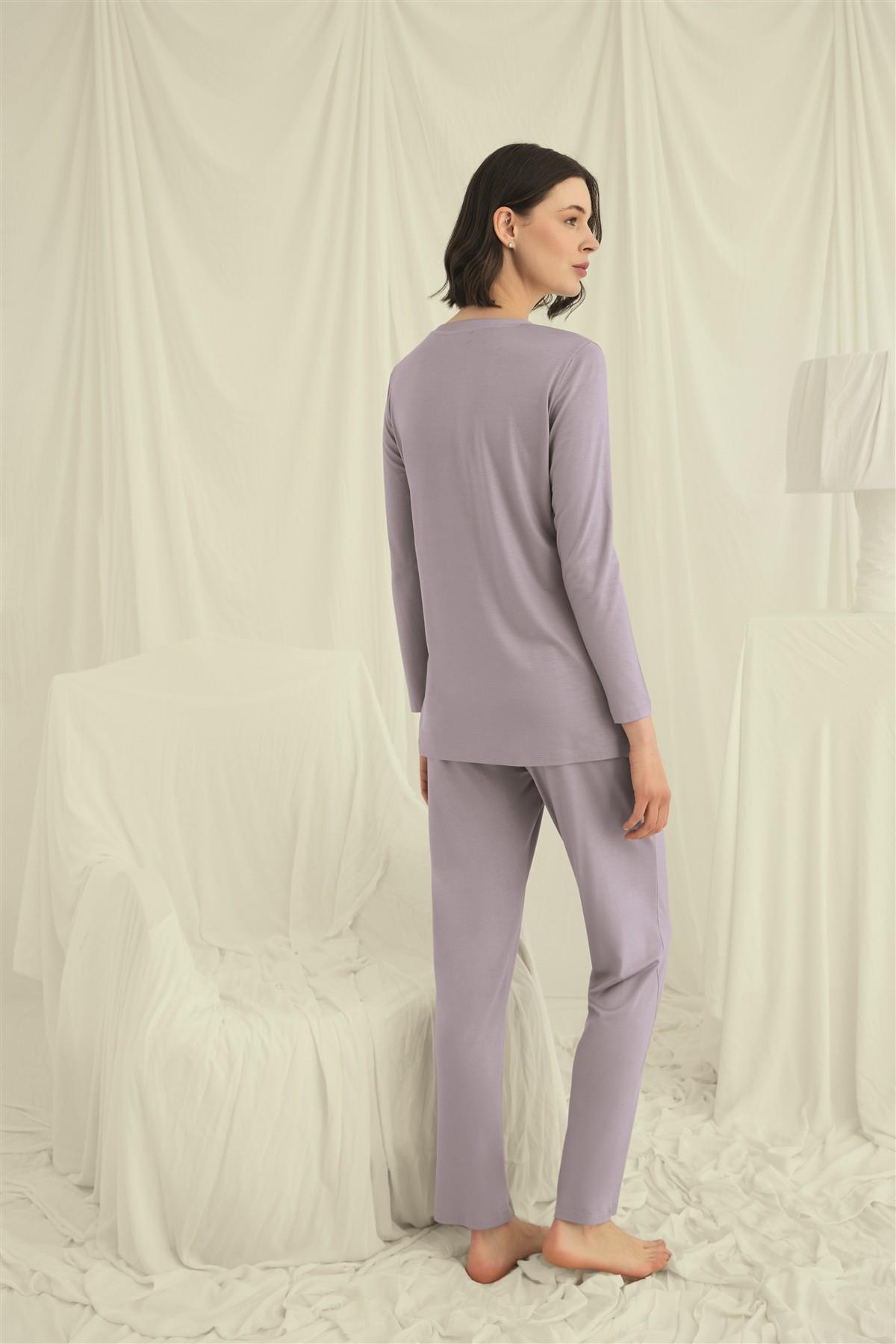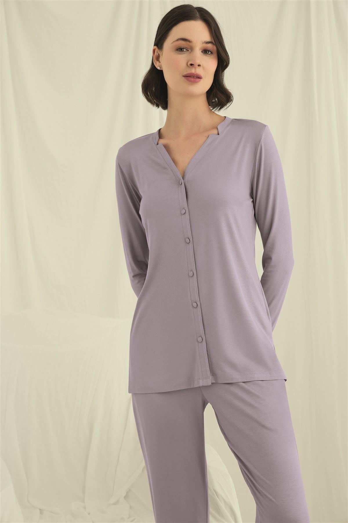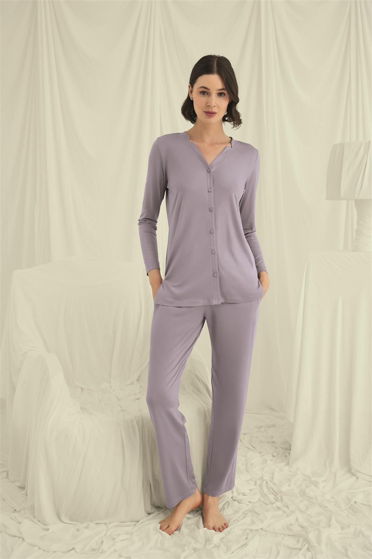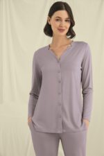 Arias Closet Uzun Kollu Boydan Düğmeli V Yaka Pijama Takımı