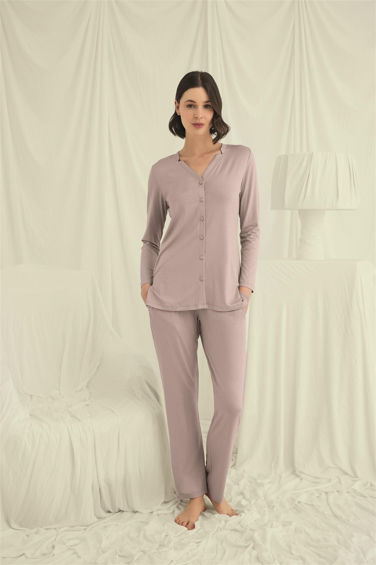 Arias Closet Uzun Kollu Boydan Düğmeli V Yaka Pijama Takımı