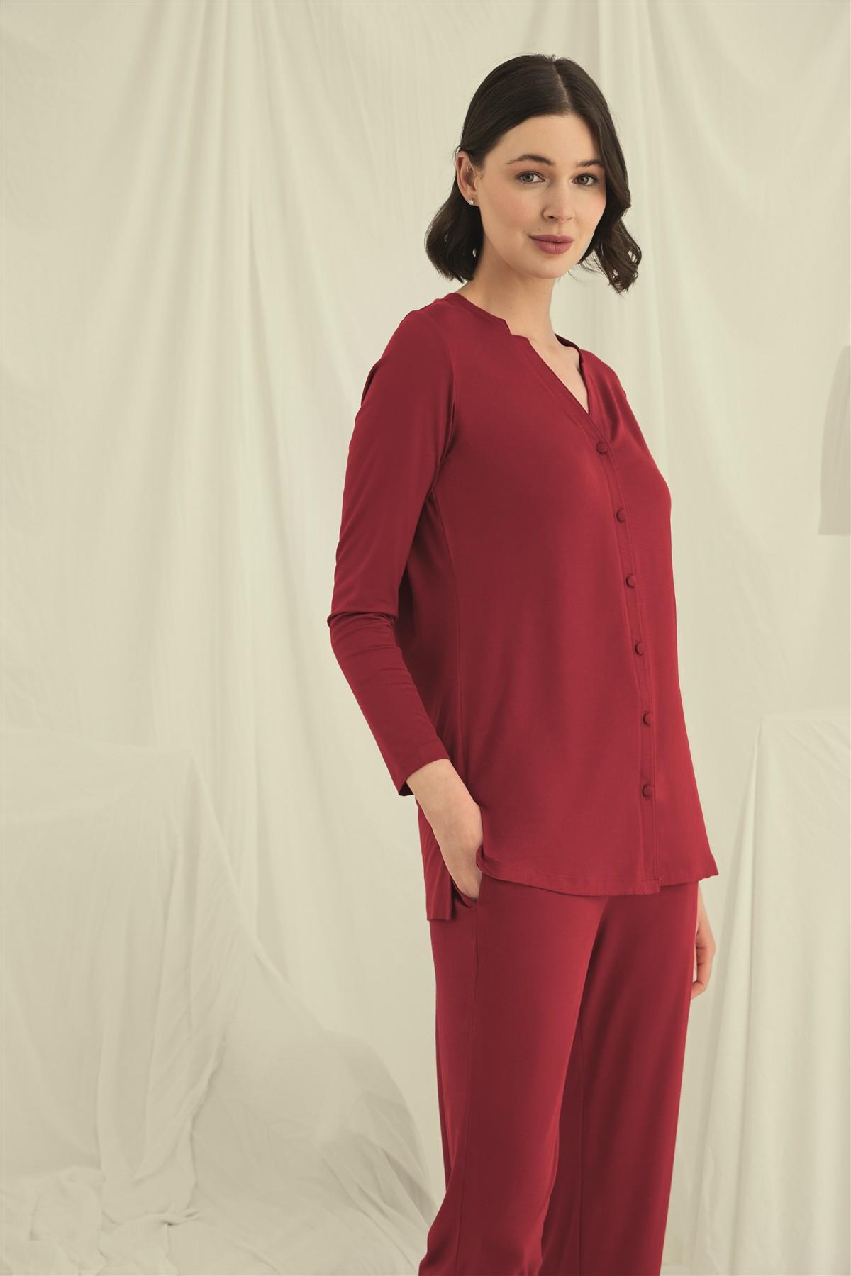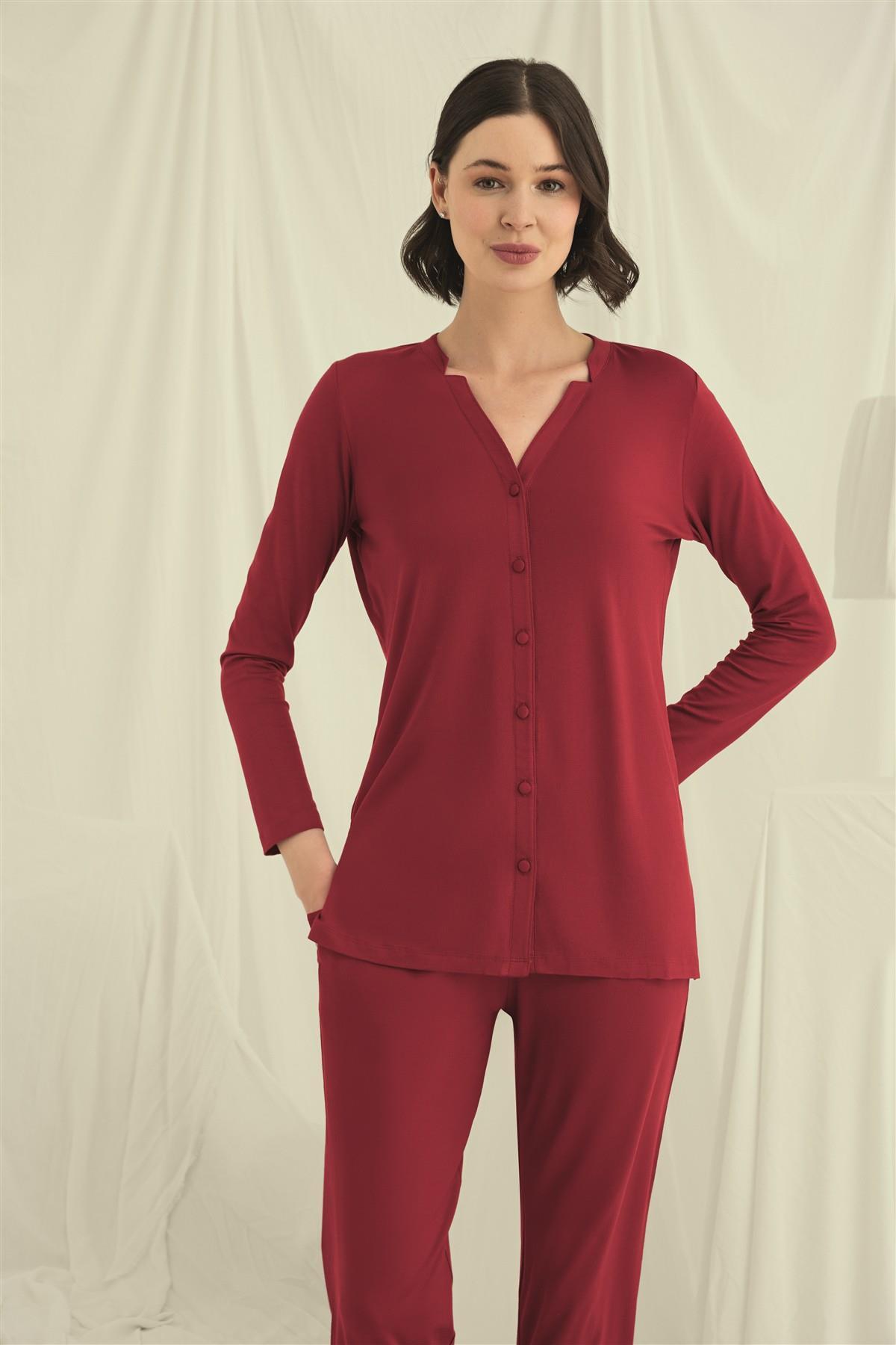 Arias Closet Uzun Kollu Boydan Düğmeli V Yaka Pijama Takımı