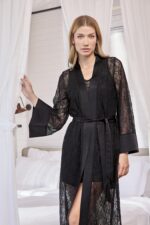 Arias Closet Uzun Kollu Dantelli ve Kuşaklı Sabahlık
