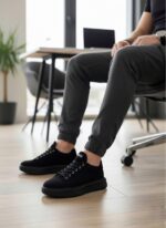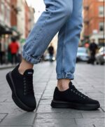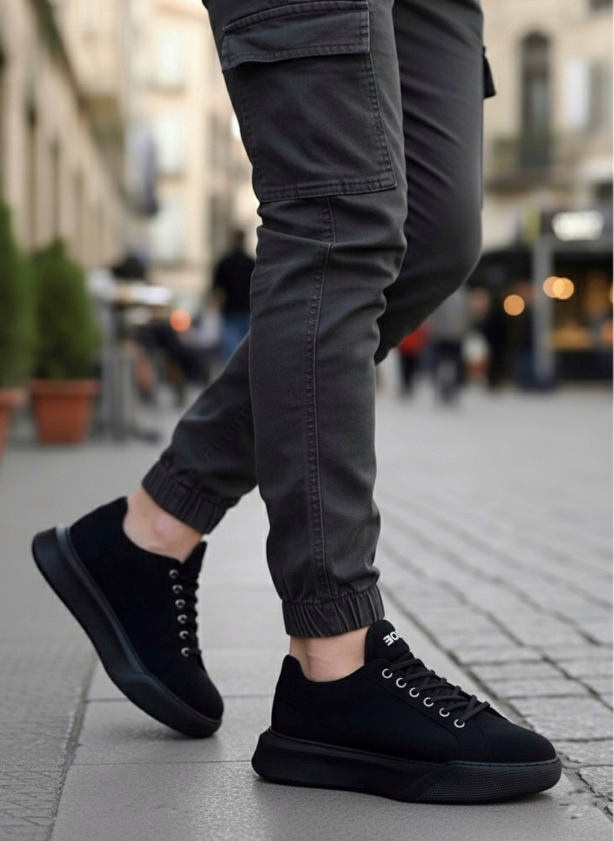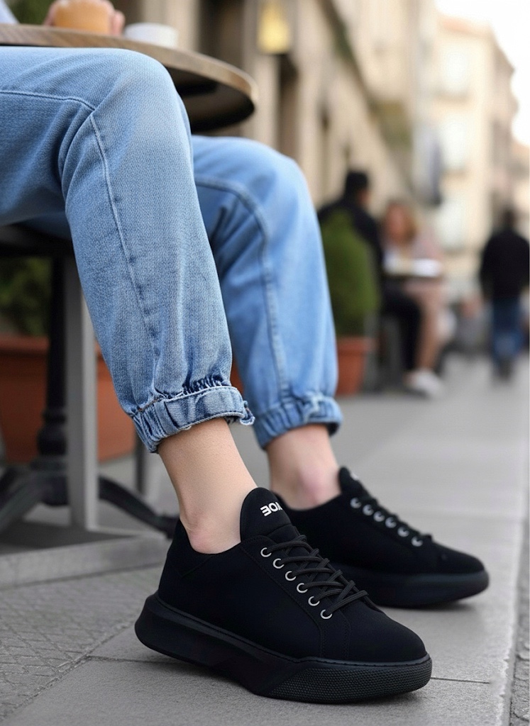 BA0161 Bağcıklı Erkek Yüksek Taban Siyah Spor Ayakkabı