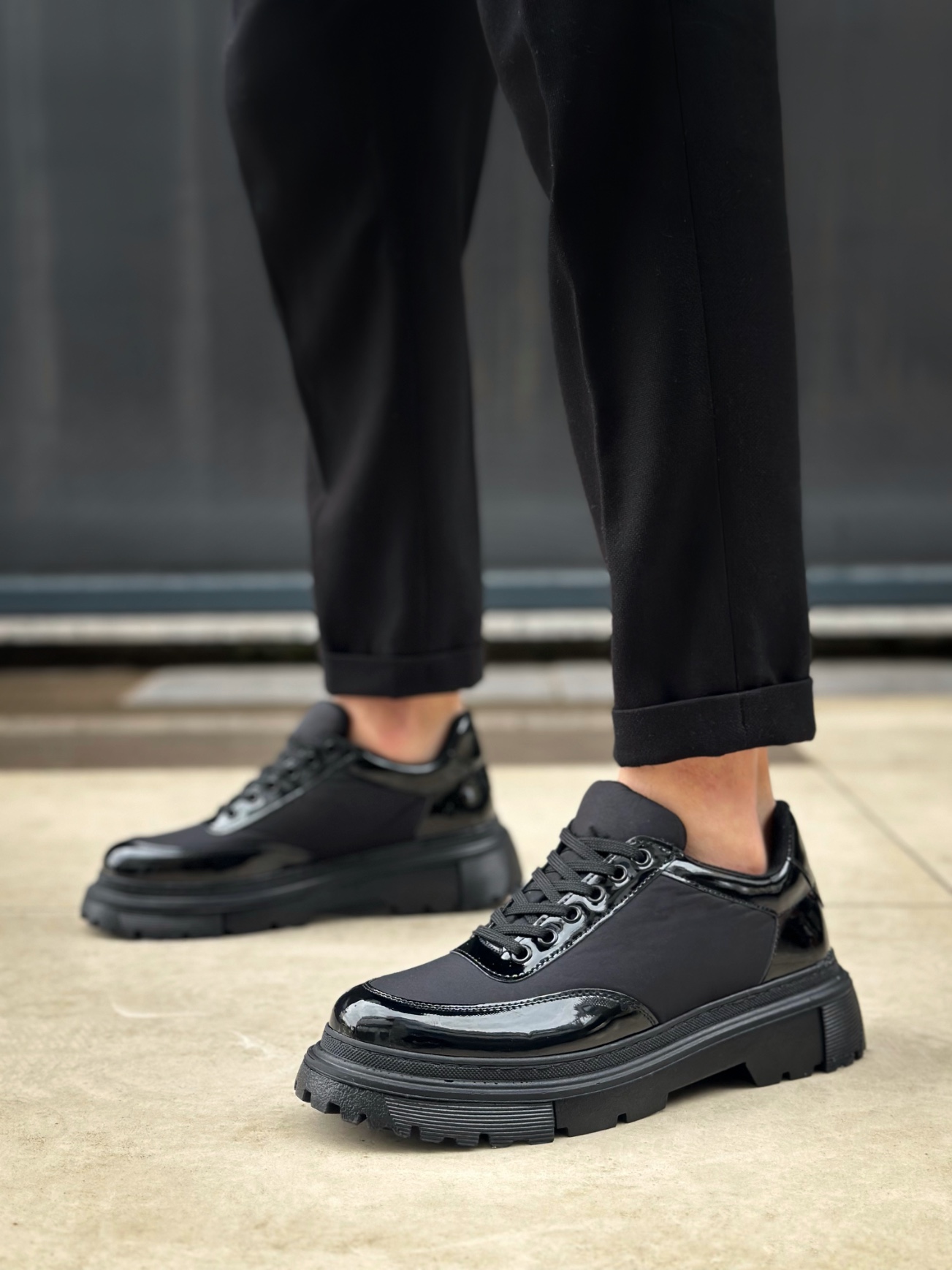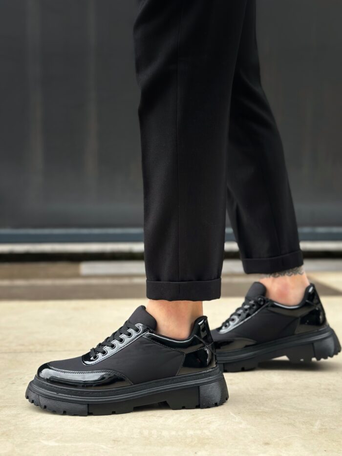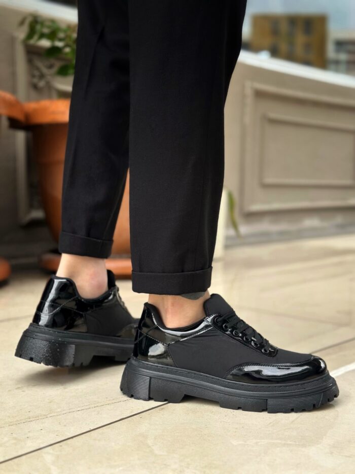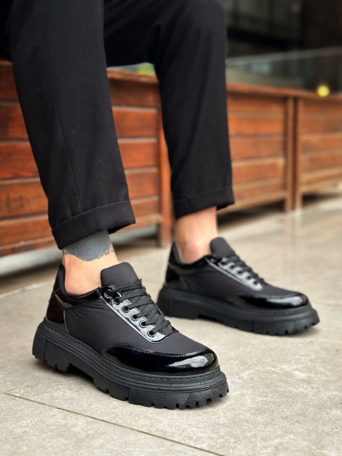 BA0243 Bağcıklı Rugan Paraşüt Detaylı Yüksek Siyah Taban Erkek Ayakkabı