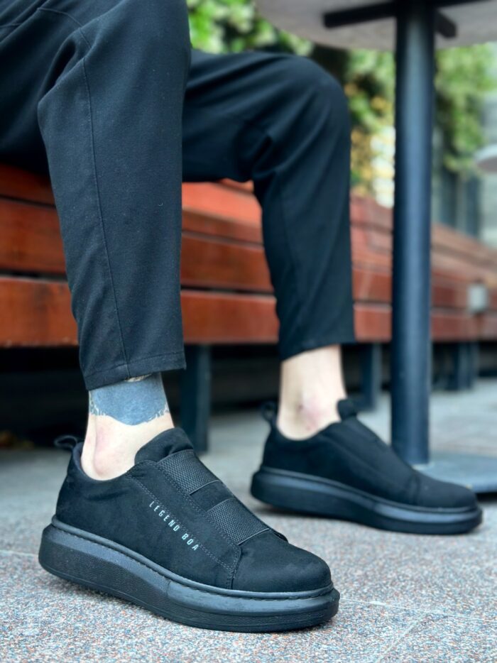 BA0307 BOA Kalın Süet Yüksek Taban Çift Bant Siyah Erkek Ayakkabı
