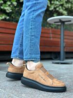 BA0307 BOA Kalın Süet Yüksek Taban Çift Bant Taba Beyaz Erkek Ayakkabı