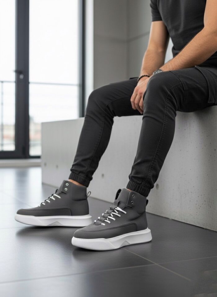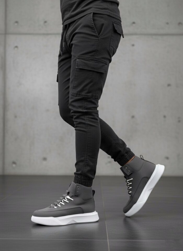 BA0321 Gizli Bağcıklı Erkek Yüksek Taban Füme Spor Bot