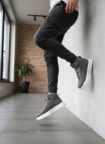 BA0321 Gizli Bağcıklı Erkek Füme Beyaz Taban Spor Bot