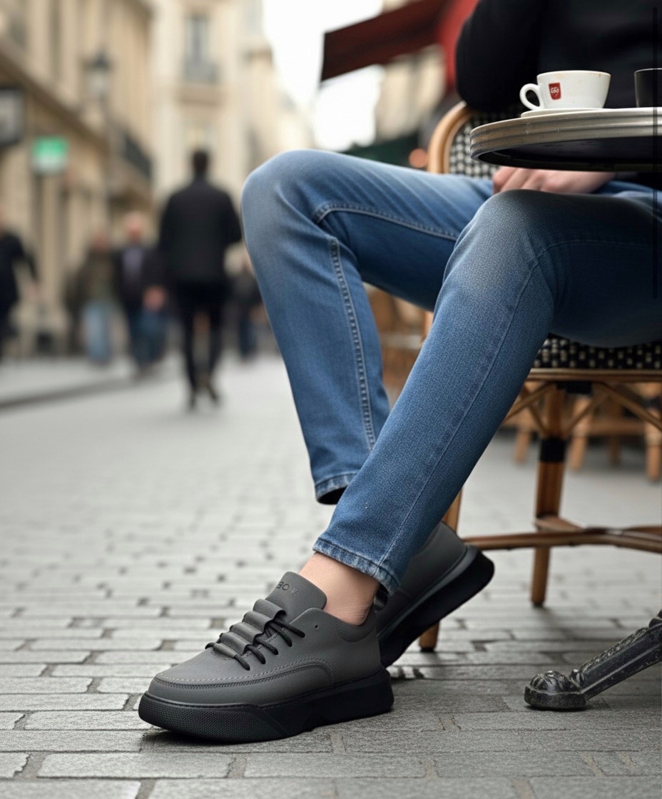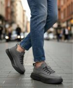 BA0332 Merdiven Desen Bağcıklı Erkek Yüksek Taban Füme Cilt Spor Ayakkabı