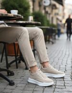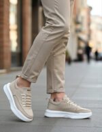 BA0332 Merdiven Desen Bağcıklı Erkek Yüksek Taban Krem Süet Spor Ayakkabı