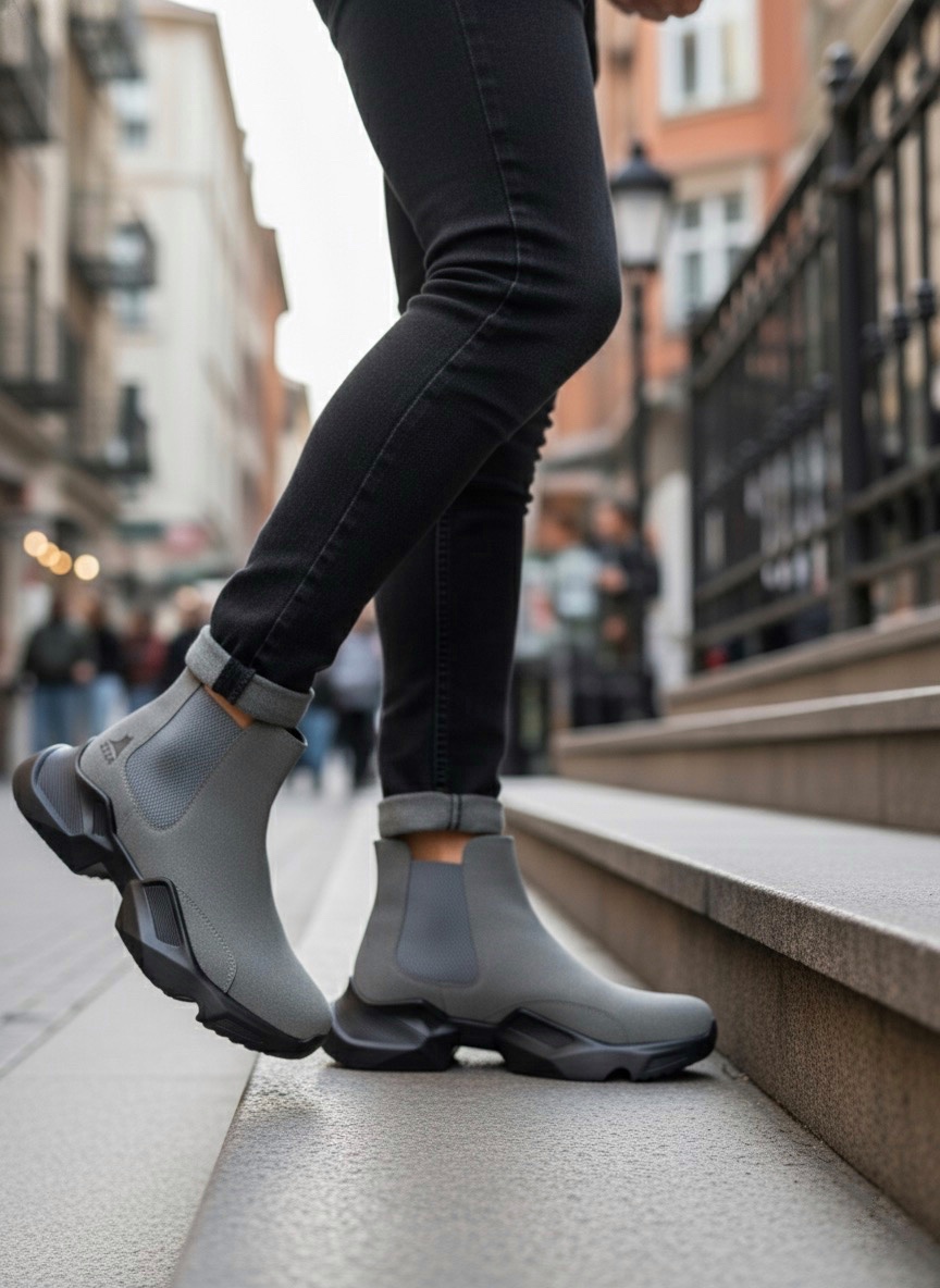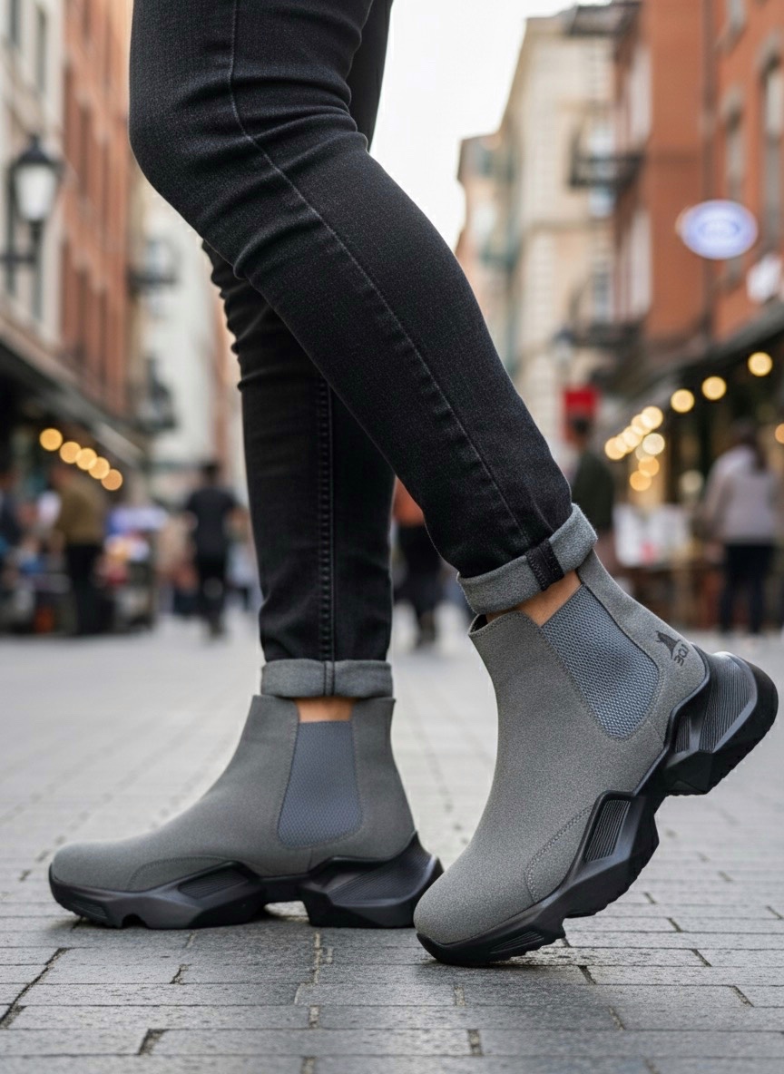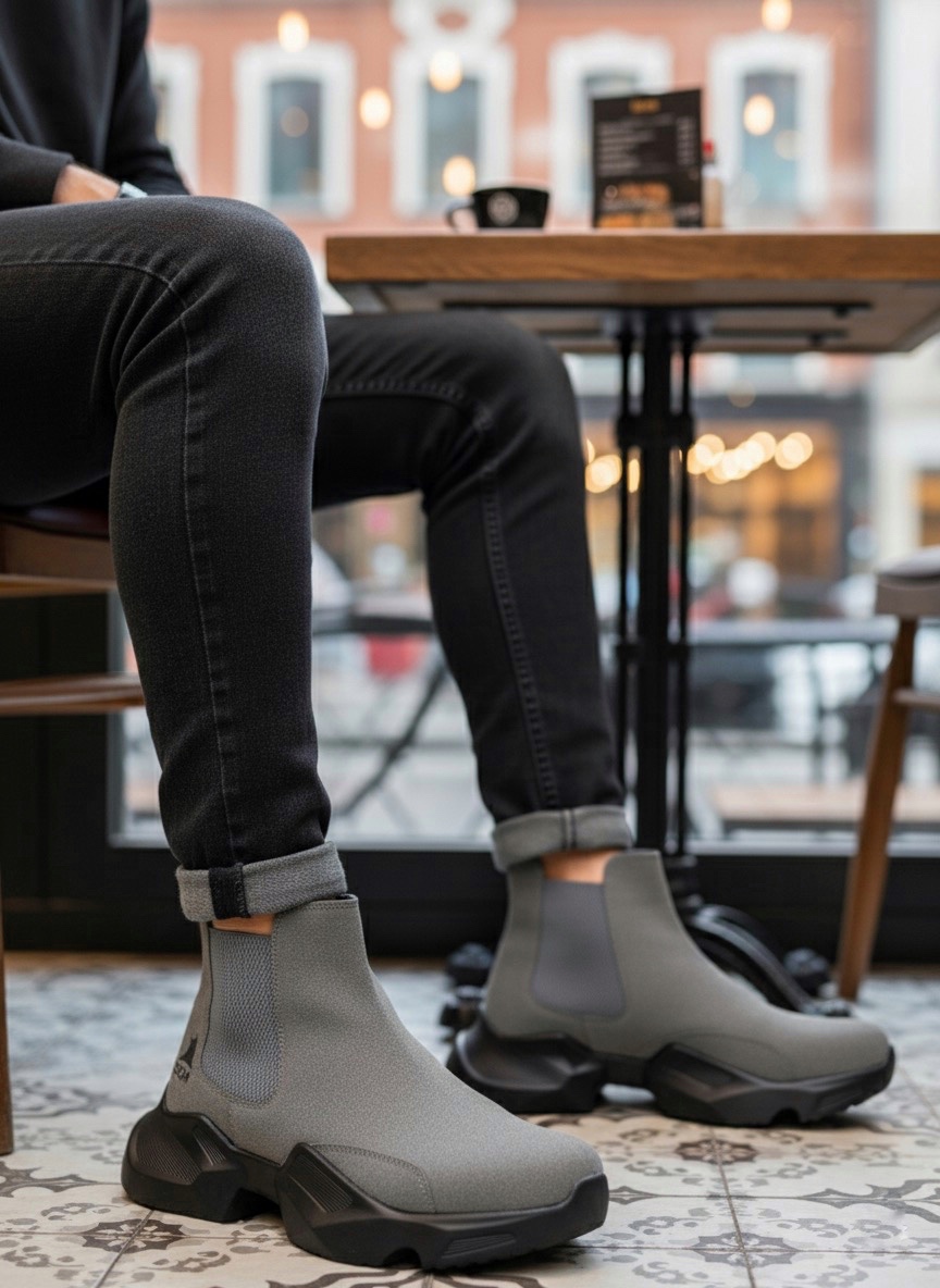 BA0444 Bağcıksız Rahat Yüksek Taban Füme Erkek Spor Yarım Bilek Bot