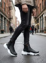 BA0444 Bağcıksız Rahat Yüksek Taban Siyah Beyaz Taban Erkek Spor Yarım Bilek Bot