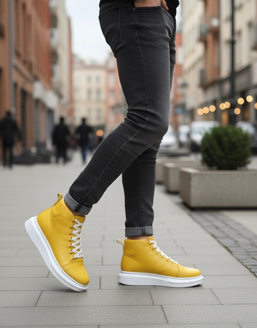 BA0713 Bağcıklı Sarı Yüksek Taban Erkek Tarz Spor Bot