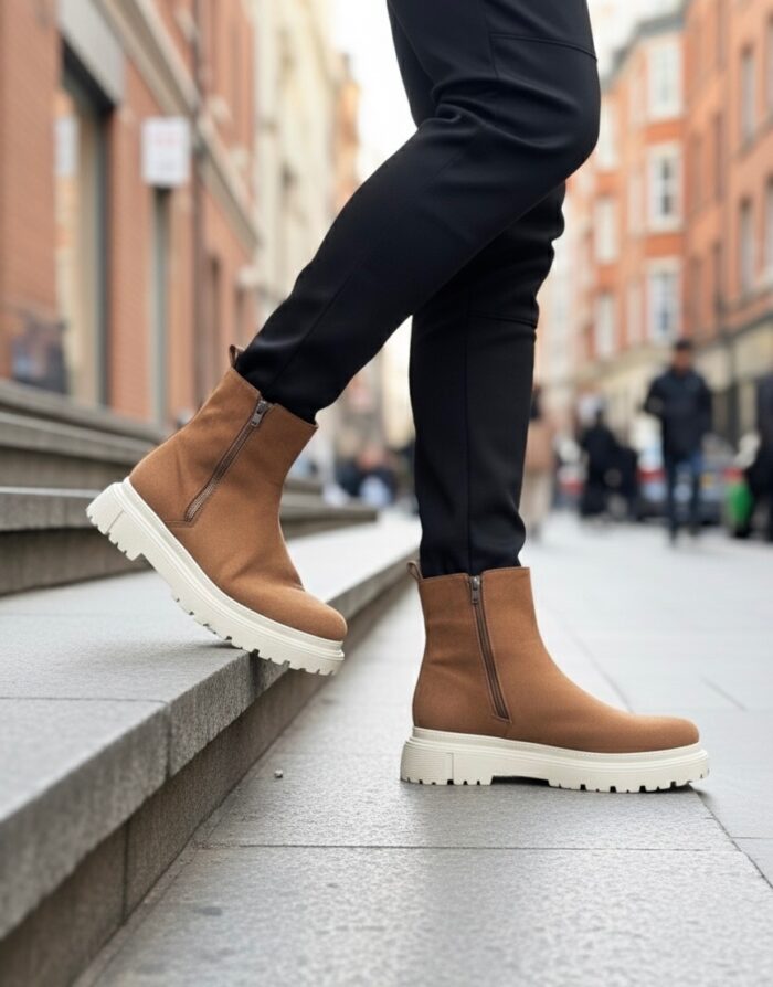 BA0777 Süet Taba Krem Taban Çift Fermuarlı Erkek Yarım Bilek Bot