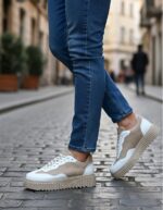 KB-CX-3 Kısa Beyaz Keten Beyaz Yüksek Taban Spor Ayakkabı