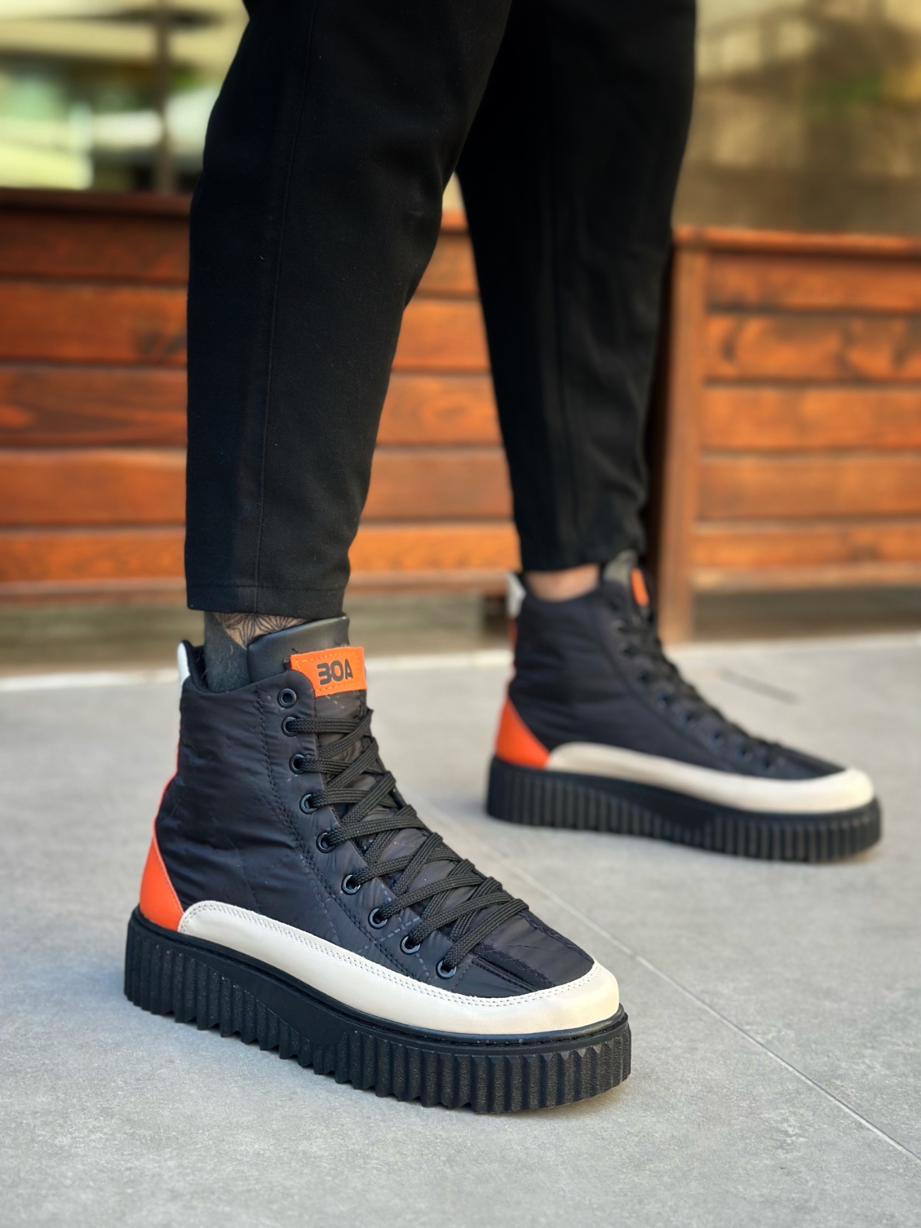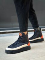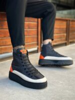 BA0801 BOA Yüksek Taban Siyah Paraşüt Kumaş Turuncu Cilt Detaylı Erkek Ayakkabı