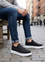 BA0321 Gizli Bağcıklı Erkek Füme Beyaz Taban Spor Bot